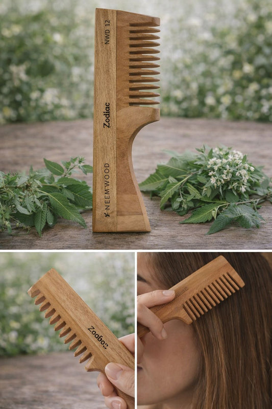 المشط الخشبي مصنوع يدويًا من خشب النيم النقي